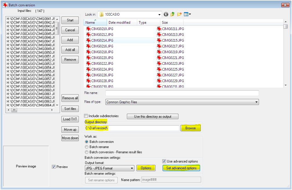 Una volta aperta la seguente finestra di dialogo, possiamo andare a scegliere l'Output directory, ovvero la cartella in cui saranno salvate le immagini ridimensionate.