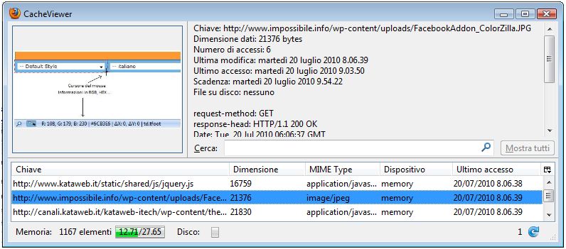- CacheViewer – E' un front-end grafico per "about:cache", utile per gestire la cache del browser;