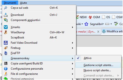 - Greasemonkey – E' una vera e propria "console" per la gestione di script aggiuntivi (qui è possibile trovarne un'infinità) tramite i quali è possibile aggiugnere contenuti, modificare l'aspetto grafico e tanto altro durante la nostra navigazione web;