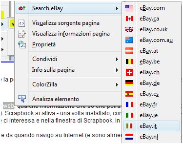 - eBay Quick Search – Aggiunge nel menu contestuale la possibilità di ricercare una determinata parola (o frase) direttamente su eBay;