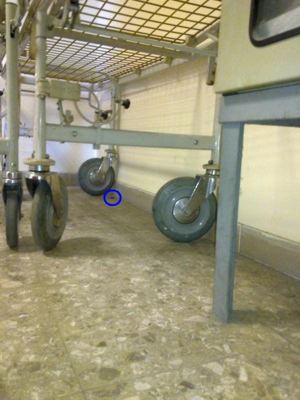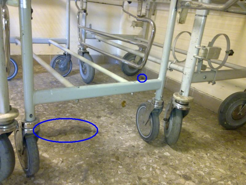 Discorso a parte merita la pulizia dell’ospedale. Nelle due foto seguenti, sono ben visibili un gomitolo di polvere di almeno 30-35 centimetri, ed uno scarafaggio di almeno 5 cm (foto 1), mentre nella foto 2 ho cercato di riprendere meglio lo scarafaggio in questione: