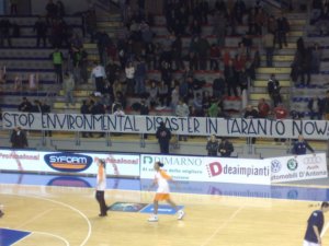 Segnalazione arrivata tramite il blog degli Amici di Beppe Grillo di Taranto: ieri sera, in occasione della partita di basket femminile del torneo Eurocup tra CRAS BASKET TARANTO e UMMC EKATERINBURG, alcuni tifosi hanno lanciato un appello al mondo attraverso la diretta tv, esponendo uno striscione con su scritto: STOP THE ENVIRONMENTAL DISASTER IN TARANTO NOW (che tradotto in italiano sta per FERMATE IL DISASTRO AMBIENTALE A TARANTO, ADESSO!).