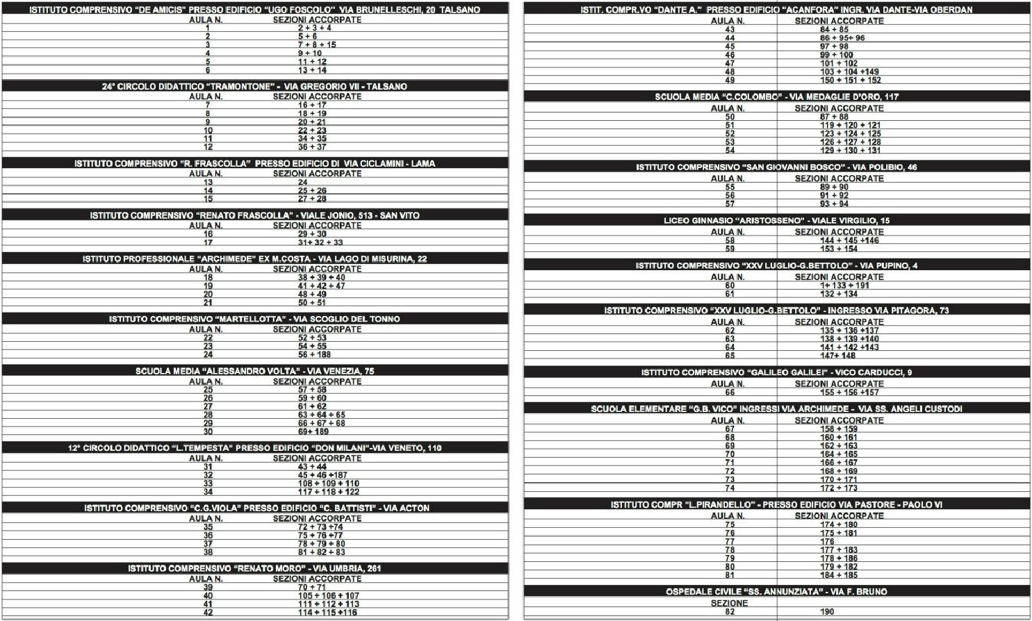 In occasione del Referendum c'è stato l'accorpamento di diverse sezioni, l'elenco è quello di seguito (click sull'immagine per visualizzarla a schermo intero):